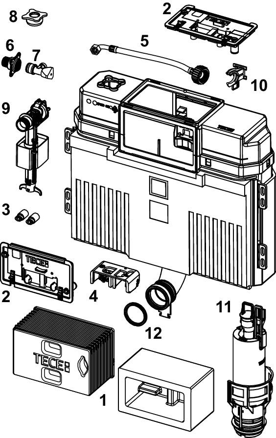 Spłuczka podtynkowaTECETECE, 522 x 485 x 141 mm, uruchamiana od góry, uruchamiana od przodu, z kolanem odpływowym 50mm