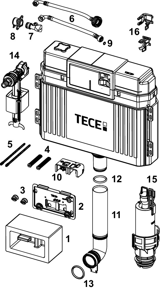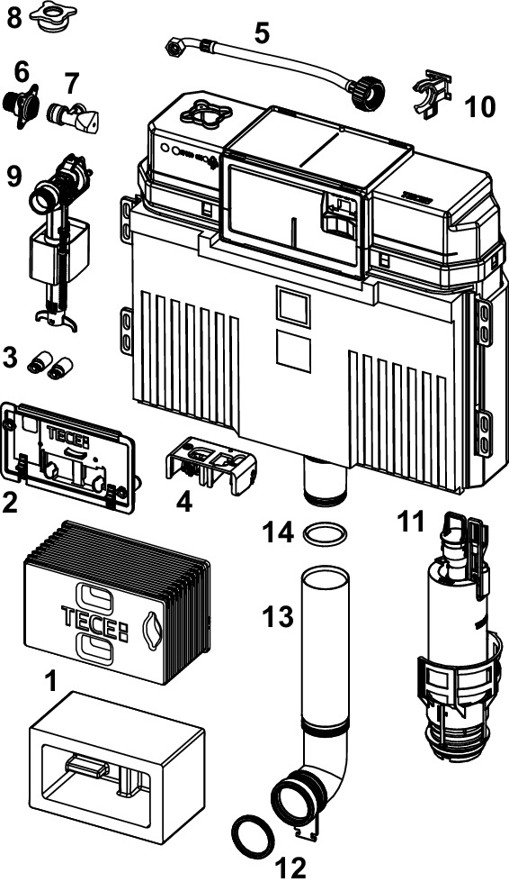Spłuczka podtynkowaTECETECE, 528 x 475 x 143 mm, uruchamiana od przodu, z kolanem odpływowym 269mm