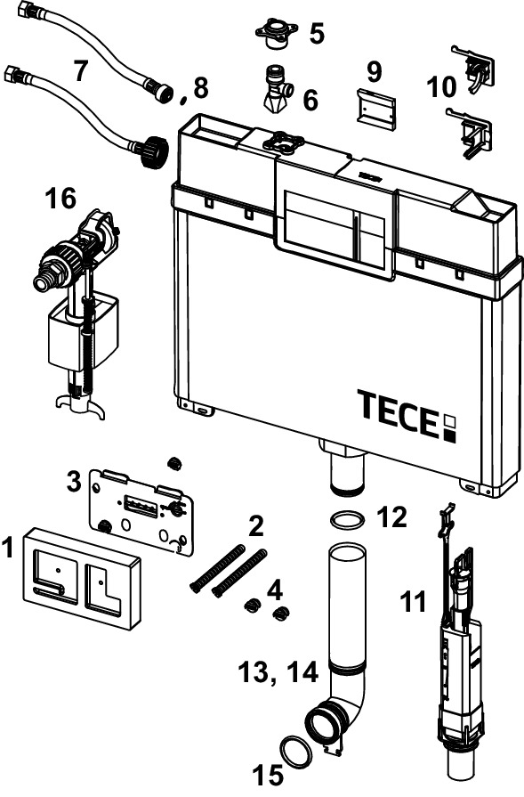 Spłuczka podtynkowaTECETECE, 574 x 558 x 88 mm, uruchamiana od przodu