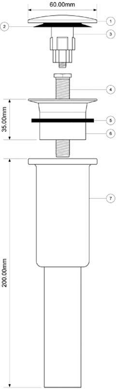 Spust umywalkowy 32x220mm wykonany z mosiądzu, z mechanizmem "klik-klak"