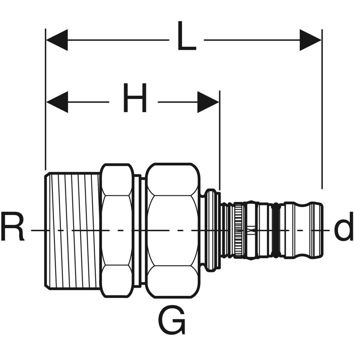 Śrubunek przejściowy GEBERIT Mepla, miedź / miedź, 1 1/2'' x 50 mm (GZ gazowy stożkowy x końcówka wciskowa) z uszczelką