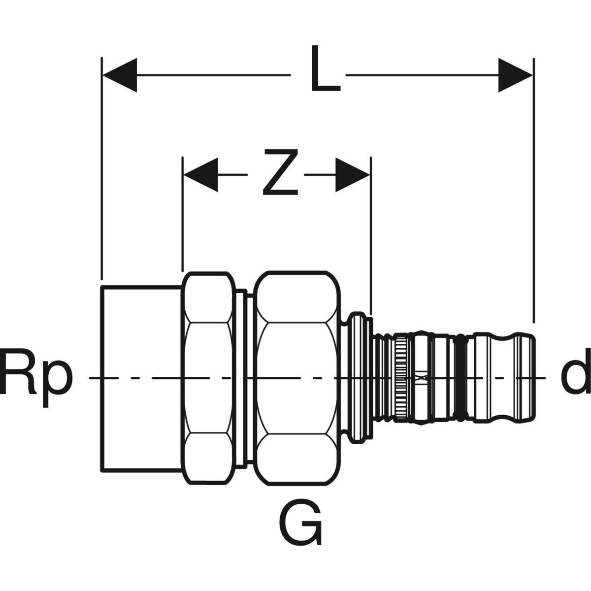 Śrubunek przejściowy GEBERIT Mepla, miedź / miedź, 1 1/4'' x 32 mm (GW x końcówka wciskowa), (głębokość: 19 mm) z uszczelką