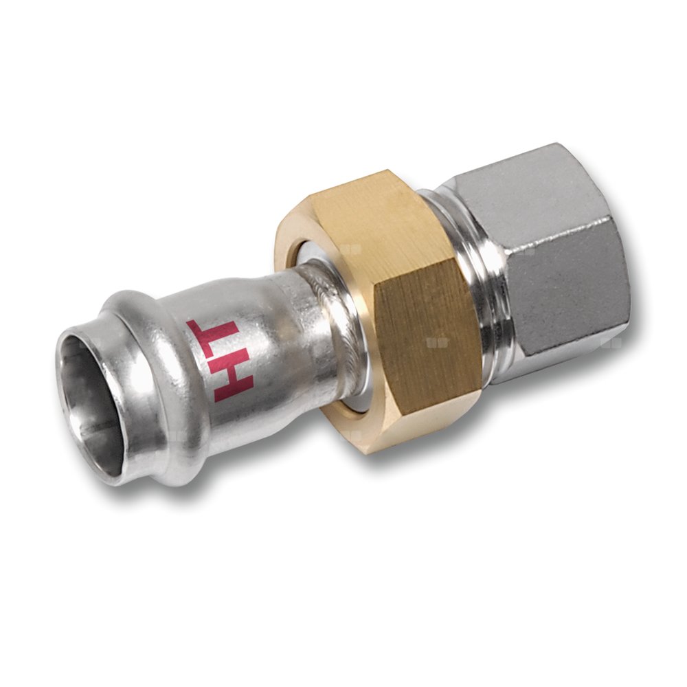 Śrubunek SANHA NiroSan Press Industry z uszczelką i nakrętką z mosiądzu trzyczęściowy, stal nierdzewna, 54 mm x 2'' (zw x GW)