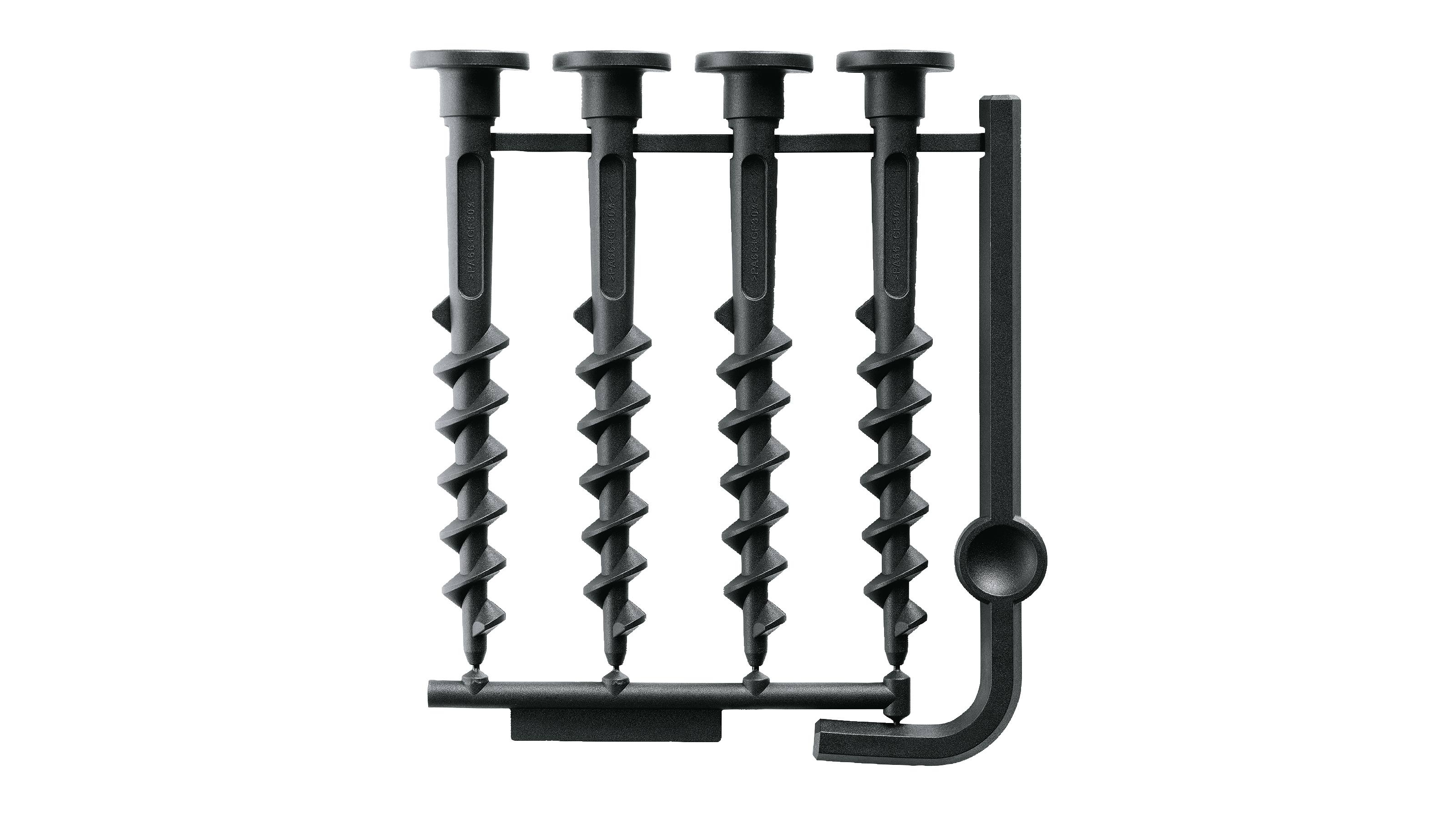 Poręczne opakowanie z 4 śrubami i kluczem sześciokątnym