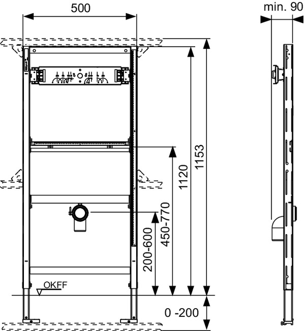 Stelaż podtynkowy do pisuaru TECE profil, 1120 x 500 x 90 mm, regulacja wysokości