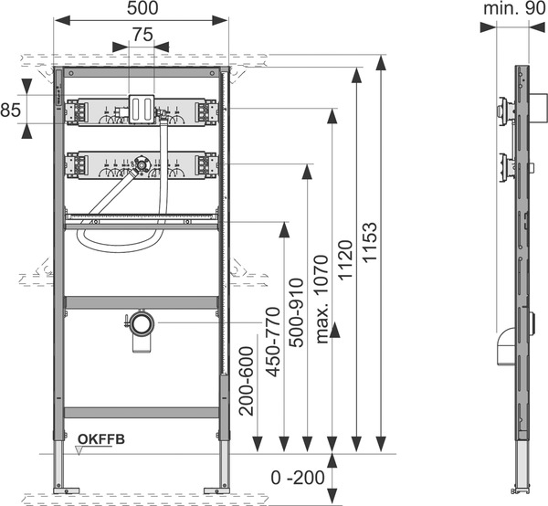 - dwóch regulowanych nóżek do montażu podłogowego w zakresie 0-200 mm