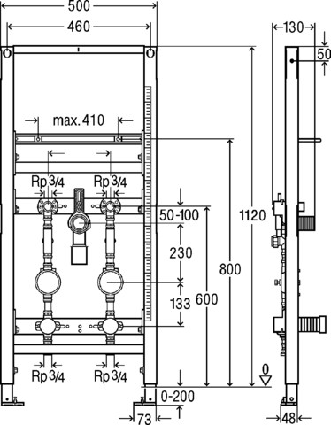 Stelaż podtynkowy do umywalki VIEGA 853731, 1120 x 500 x 130 mm, bateria: stojąca, regulacja wysokośći
