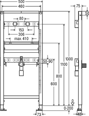 Stelaż podtynkowy do umywalki VIEGA 8540, 1300 x 500 x 75 mm, bateria: ścienna natynkowa, regulacja wysokośći