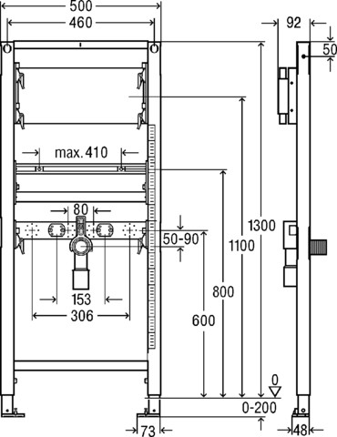 Stelaż podtynkowy do umywalki VIEGA 854031, 1300 x 500 x 87 mm, bateria: ścienna podtynkowa, regulacja wysokośći, regulacja szerokości