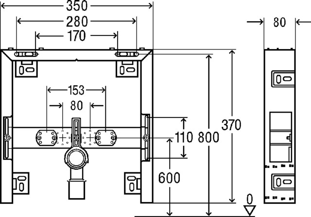 Prevista Pure-blok naścienny do umywalki. Przeznaczenie: umywalka z armaturą jednootworową, do wbudowania i zabudowania, stal. Wyposażenie: Rama ocynkowana, uchwyt z regulacją wysokości i izolacja akustyczna do przyłącza wody zimnej i ciepłej, materiał do mocowania, łuk odpływowy z możliwością skrócenia DN40/50 z nyplem gumowym DN50/30, nr wzoru 8550, nr kat. 776 596,