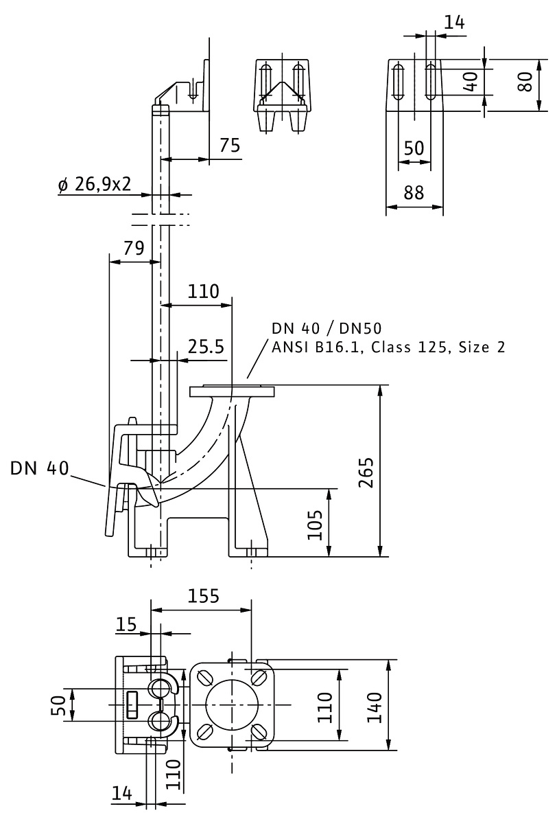 *Przyłącze wyjścia: DN 40/50