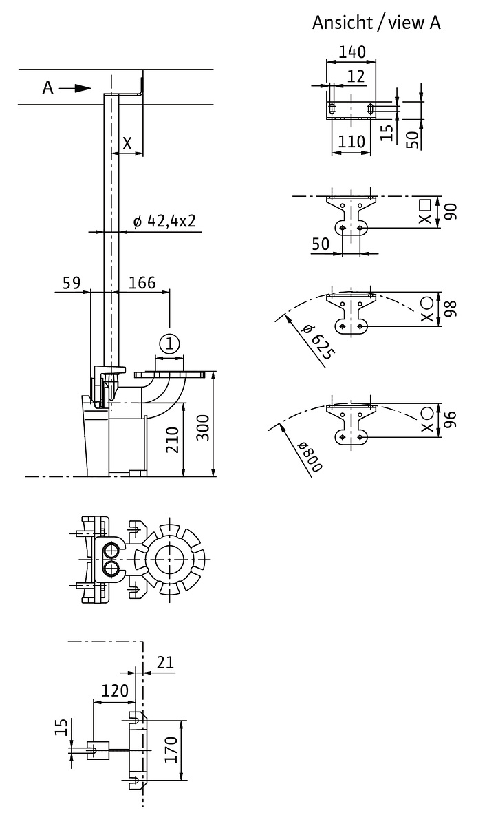 Dwie prowadnice (42,4x2 mm) zapewnia Użytkownik!