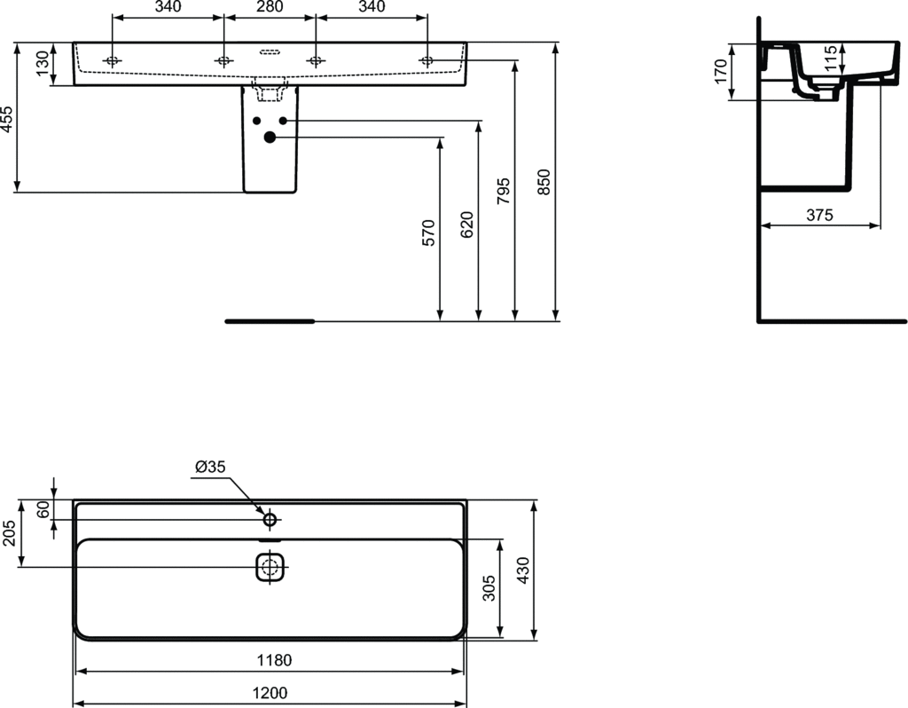 Umywalka Strada II z 1 otworem na baterię, z przelewem o szczelinowym kształcie oraz korkiem o białej pokrywie. Do montażu z meblami, półpostumentem T299601 lub samodzielnie z syfonem. Opcjonalny montaż z korkiem typu Click-clack z metalową pokrywą T3629AA.