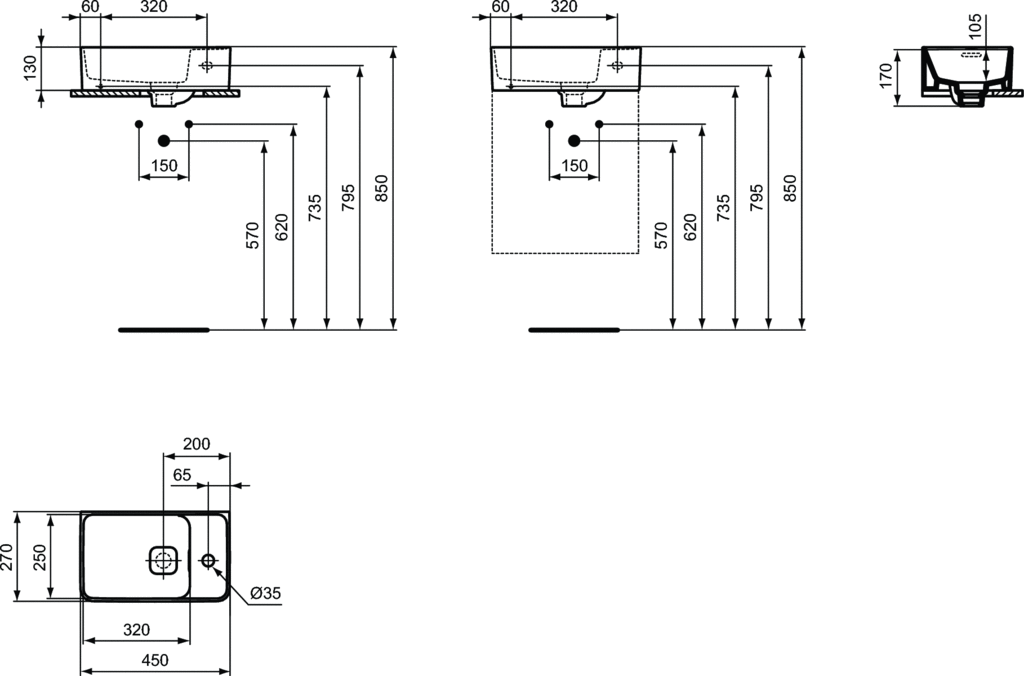 - Min. głębokość: 270 mm