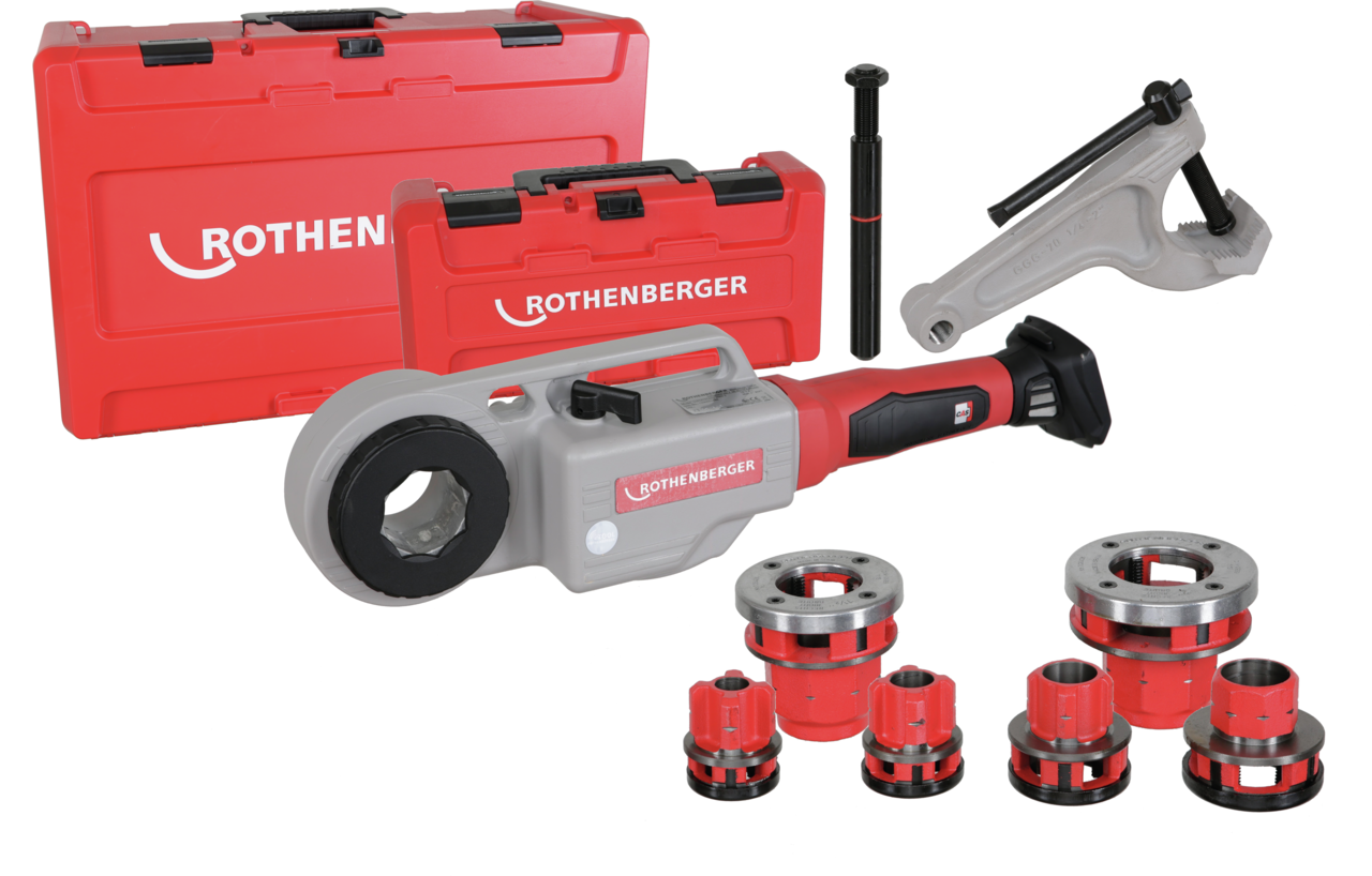 SUPERTRONIC 2000 E, z narzynkami BSPT R 1/2 - 3/4 - 1 - 1 1/4 - 1 1/2 - 2, z adapterem ROFIX, bez akumulatora/ładowarki