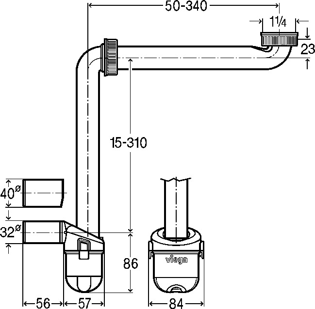Syfon 1 1/4 x 32/40, tworzywo sztuczne / biały, nr wzoru 563415