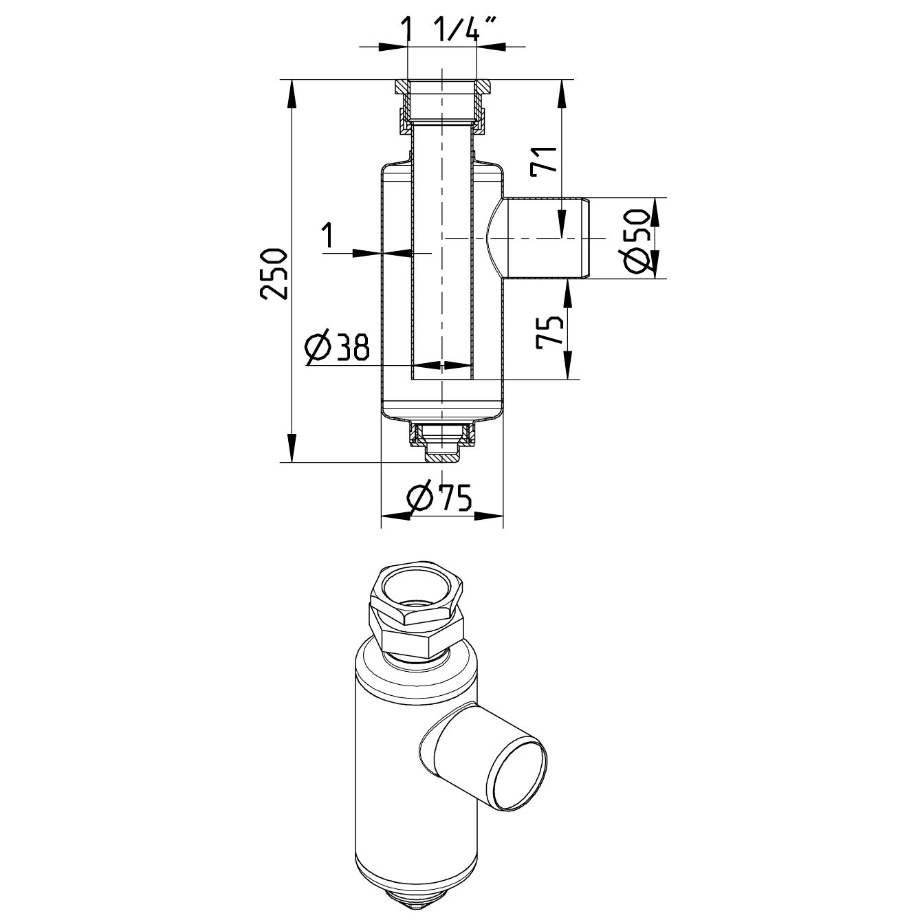 Syfon butelkowy, do systemu rur 1 1/4", stal kwasoodporna