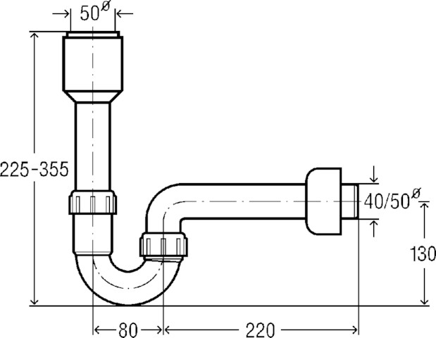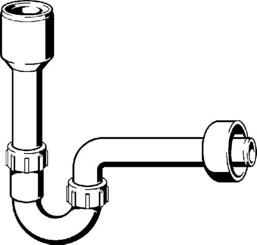 Syfon rurowy. Przeznaczenie: zlewozmywak lub pisuar bez uformowanego syfonu, tworzywo sztuczne. Wyposażenie: Odpływ poziomy, uszczelka wargowa, rozeta, wg PN-EN 274, nr wzoru 7985.94, nr kat. 117 771, DN1: 50 DN2: 40