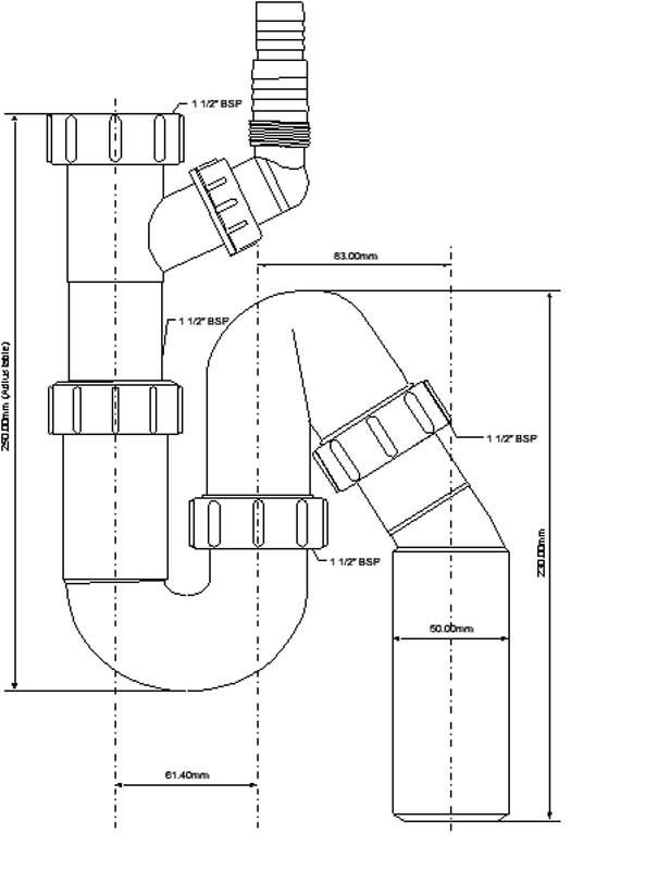 Syfon zlewozmywakowy rurowy 11/2"x50mm z podłączeniem pralki lub zmywarki bez spustu