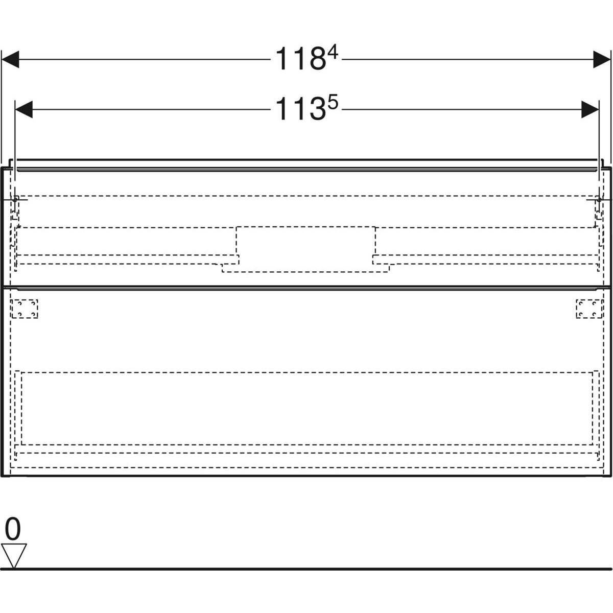 Szafka pod umywalkę Geberit iCon, z dwoma szufladami: Szerokość umywalki=120cm, Korpus i front: orzech hickory / melaminowa struktura drewna, Uchwyt: lava / malowany proszkowo, matowy