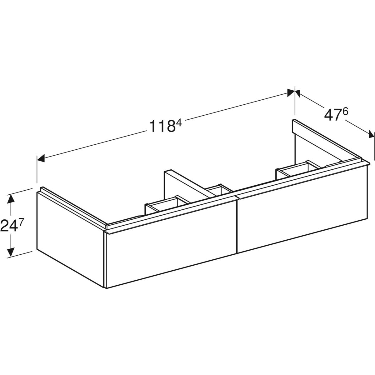 Szafka pod umywalkę podwójną Geberit iCon, z dwoma szufladami: Szerokość umywalki=120cm, H=24.7cm, Korpus i front: biały / lakierowany matowy, Uchwyt: biały / powlekany proszkowo, matowy