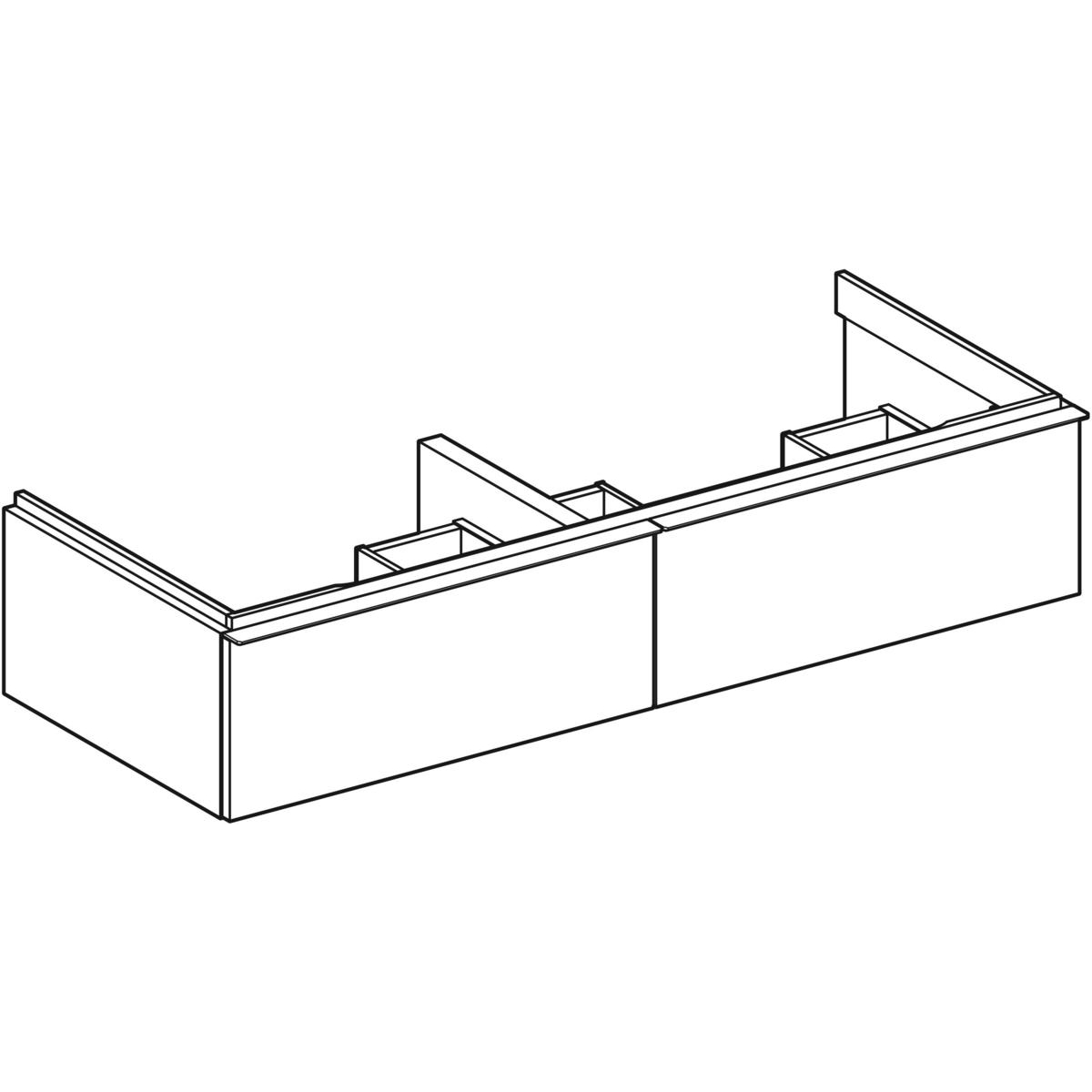 Szafka pod umywalkę podwójną Geberit iCon, z dwoma szufladami: Szerokość umywalki=120cm, H=24.7cm, Korpus i front: biały / lakierowany na wysoki połysk, Uchwyt: chromowany z połyskiem