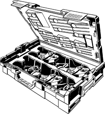 Zestaw szczęk zaciskowych, PT2, do systemów rurowych z tworzywa sztucznego, zalecane do Pressgun 6 Plus, Pressgun 6, Pressgun 6B, Pressgun 5, Pressgun 4B, Pressgun 4E, zaciskarka PT3-E/EH, PT3-AH, zaciskarka Typ 2(PT2), zaciskarka akumulatorowa producenta Holger Clasen, zaciskarki Geberit/Mapress Typ PWH 75, Typ N 230 V i Typ N Akku, zaciskarki Geberit/Mapress Typ EFP II, ACO 1, ECO 1, ACO 201, ECO 201, AFP 201, EFP 201, ACO 202 i ECO 202, zaciskarki Ridgid RP 10-S, RP 10-B, RP 330C/330B, RP 340. Wyposażenie: walizka systemowa nr wzoru 2202, wkładka nr wzoru 2202.60, wkładka walizki PT2-szczęki zaciskowe nr wzoru 2202.1, szczęka zaciskowa PT2 nr katalogowy 351 540, 351 557, 351 564, nr wzoru 2202.32, nr kat. 793 494, do Sanfix Fosta: 16–25 do Fonterra: 16–25 ilość w zestawie: 3