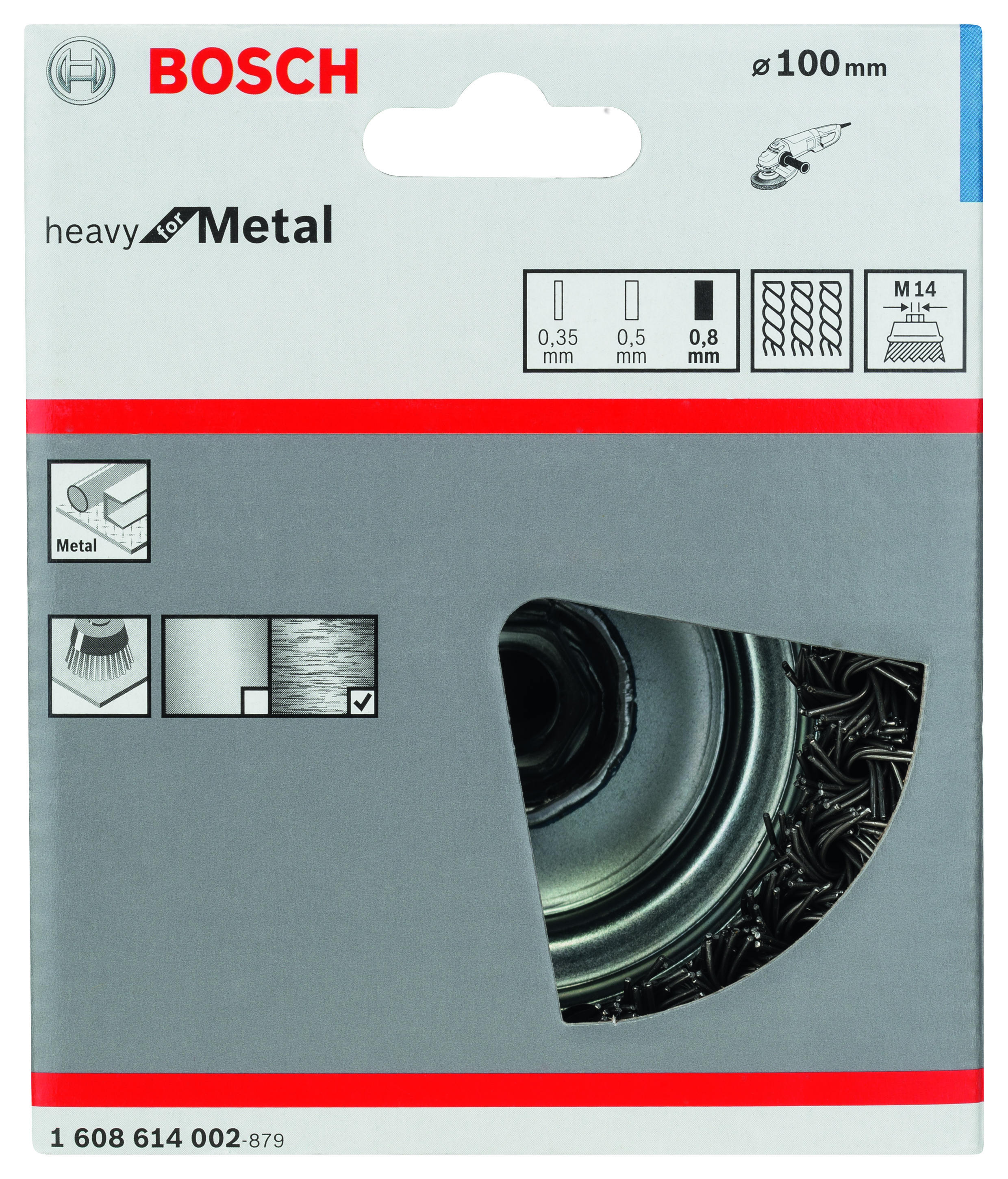 Tekst produktu, osprzęt szary Szczotka druciana garnkowa, drut pleciony Odpowiednia do wysokowydajnego czyszczenia od średnich do dużych powierzchni metalowych, np. usuwania silnej korozji, powłok antykorozyjnych, farb i lakierów. Odpowiednia do wszystkich szlifierek kątowych z gwintem M14 i szlifierek GGS 6 S Professional