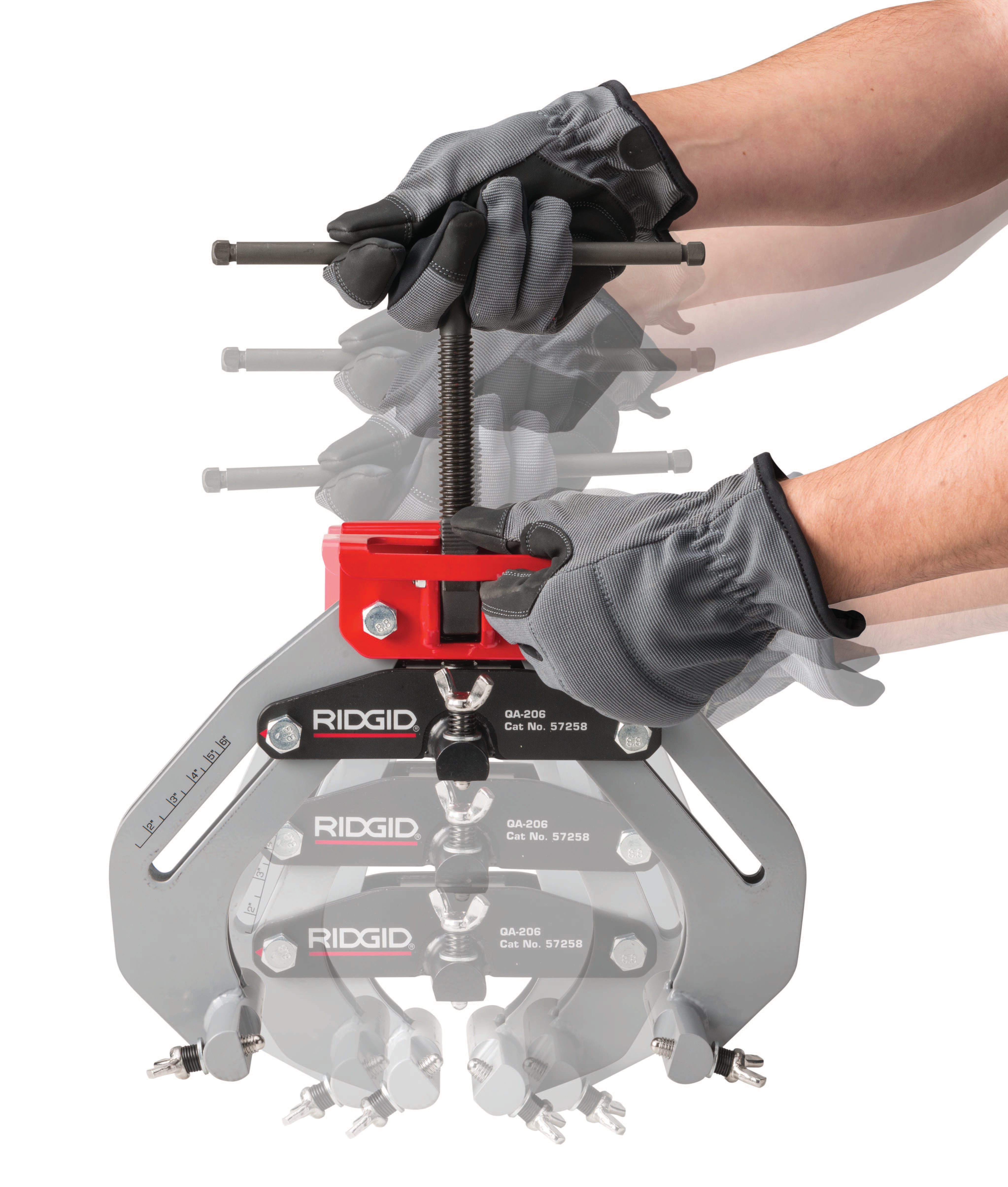 Szybko działający zacisk spawalniczy do rur zapewnia zarazem bezpieczne mocowanie, jak i szybkie połączenie. Zintegrowany uchwyt i mechanizm zaciskowy ułatwiają przenoszenie i ustawianie, a sprężynowe śruby ustalające zapewniają dopasowanie rur do siebie. Podobnie jak wszystkie narzędzia RIDGID, wytrzymała konstrukcja stalowa jest odporna na trudne warunki spawania. Dostępny w dwóch rozmiarach: 2"–6" (50–150 mm) i 4,5"–12" (112–300 mm). Zacisk do szybkiego ustawiania i dopasowywania różnych rozmiarów rur. Zintegrowany uchwyt do przenoszenia do łatwego ustawiania i dopasowywania rur do siebie. Regulator wielkości umożliwia ustawienie średnicy zacisku zbliżonej do docelowej średnicy rury. Wytrzymała konstrukcja stalowa dostosowana do trudnych warunków w miejscu pracy. Sprężynowe śruby z nakrętkami motylkowymi ułatwiają precyzyjne wyrównywanie w 3 punktach. Gwintowana śruba ACME przenosi dużą siłę zacisku.
