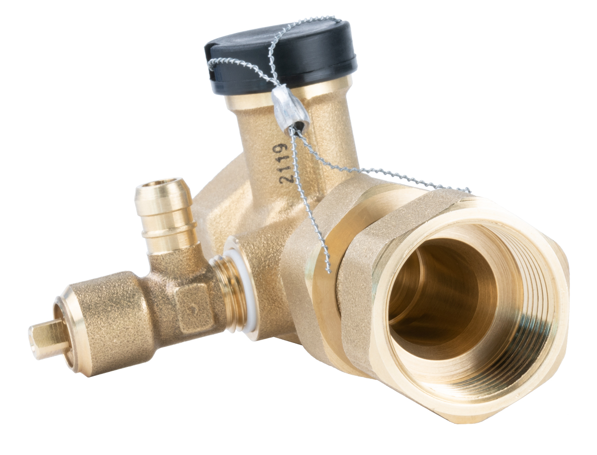Wbudowany zawór odcinający z kołpakiem i plombą.