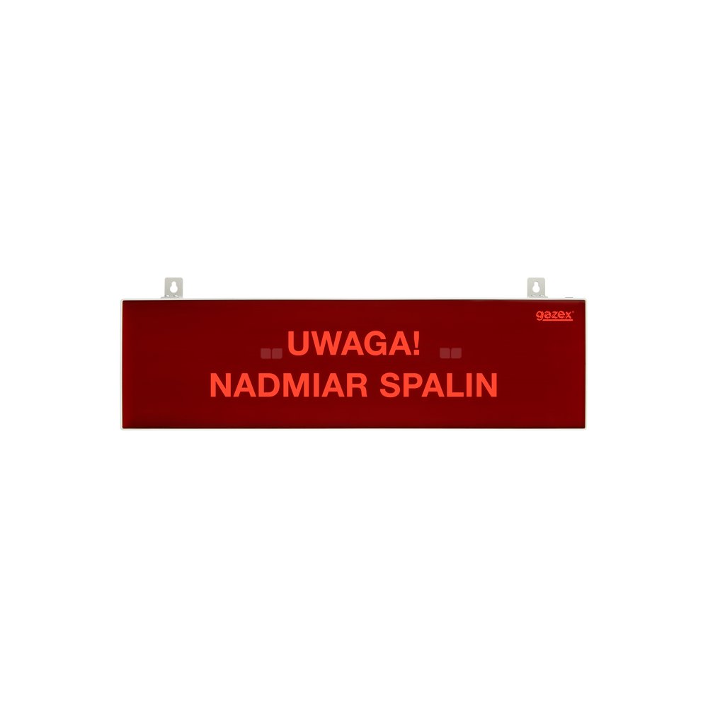 tablica ostrzegawcza dwustronna "UWAGA! NADMIAR SPALIN", podświetlenie czerwone LED, wbudowana cicha syrenka, zasilanie 230V