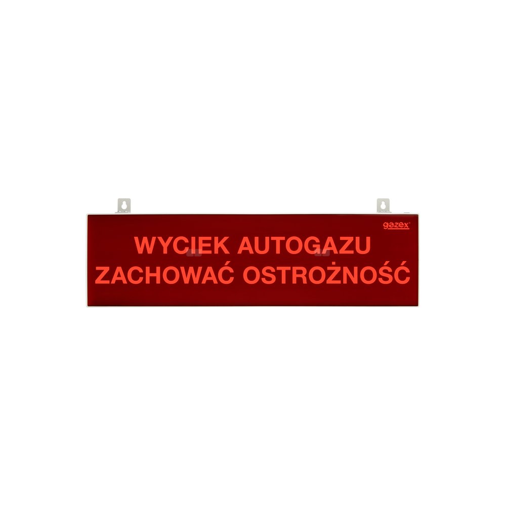 tablica ostrzegawcza dwustronna "WYCIEK AUTOGAZU ZACHOWAĆ OSTROŻNOŚĆ", podświetlenie czerwone LED, wbudowana cicha syrenka, zasilanie 12/24V