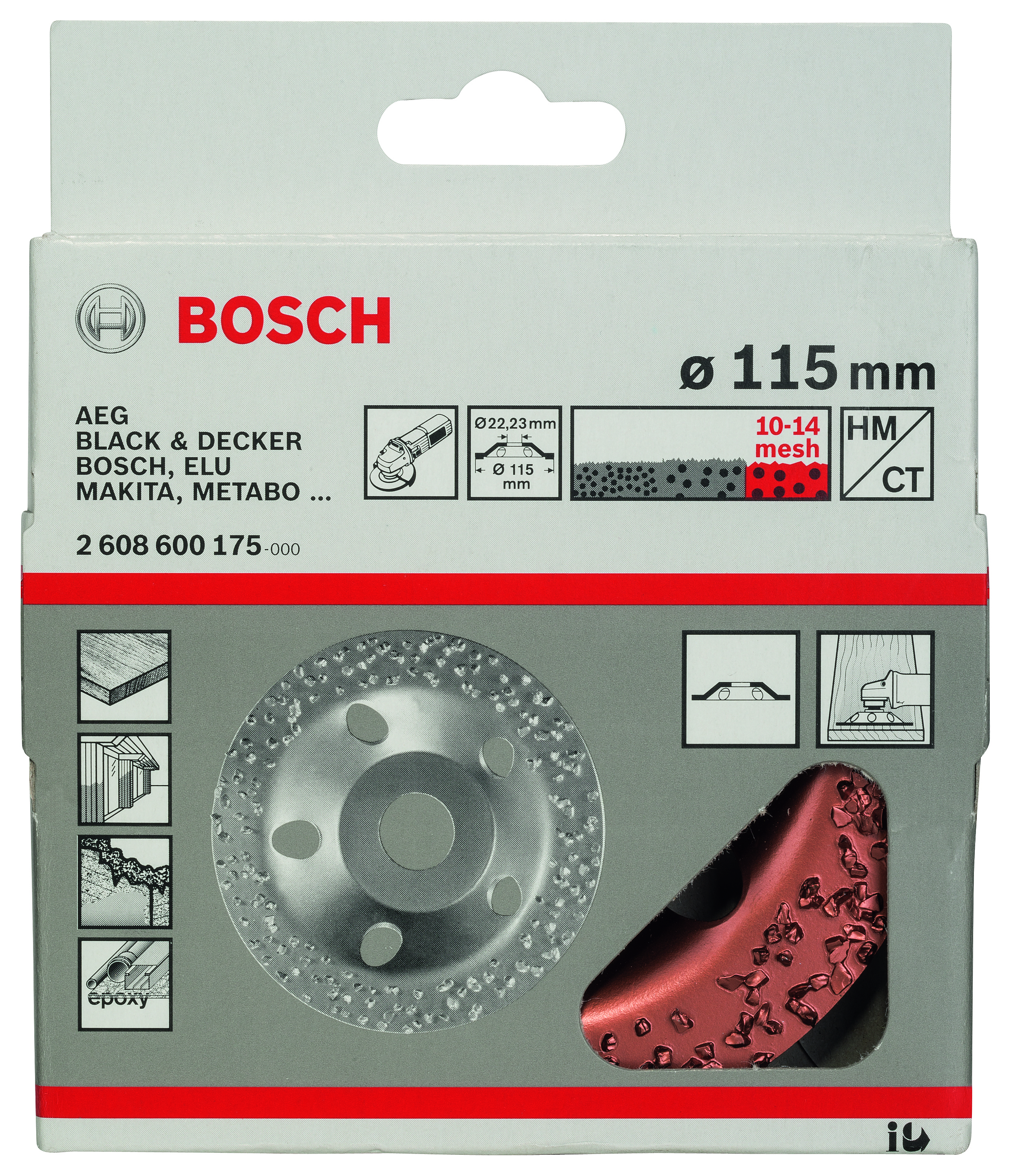 Tekst produktu, osprzęt szary Płaskie Odpowiednie do wszystkich szlifierek kątowych 115 i 125 mm z gwintem M14 Aby pracować bez pyłu, wybierz odpowiednią pokrywę odsysającą do szlifierki kątowej firmy Bosch: 2605510224 lub 1605510281