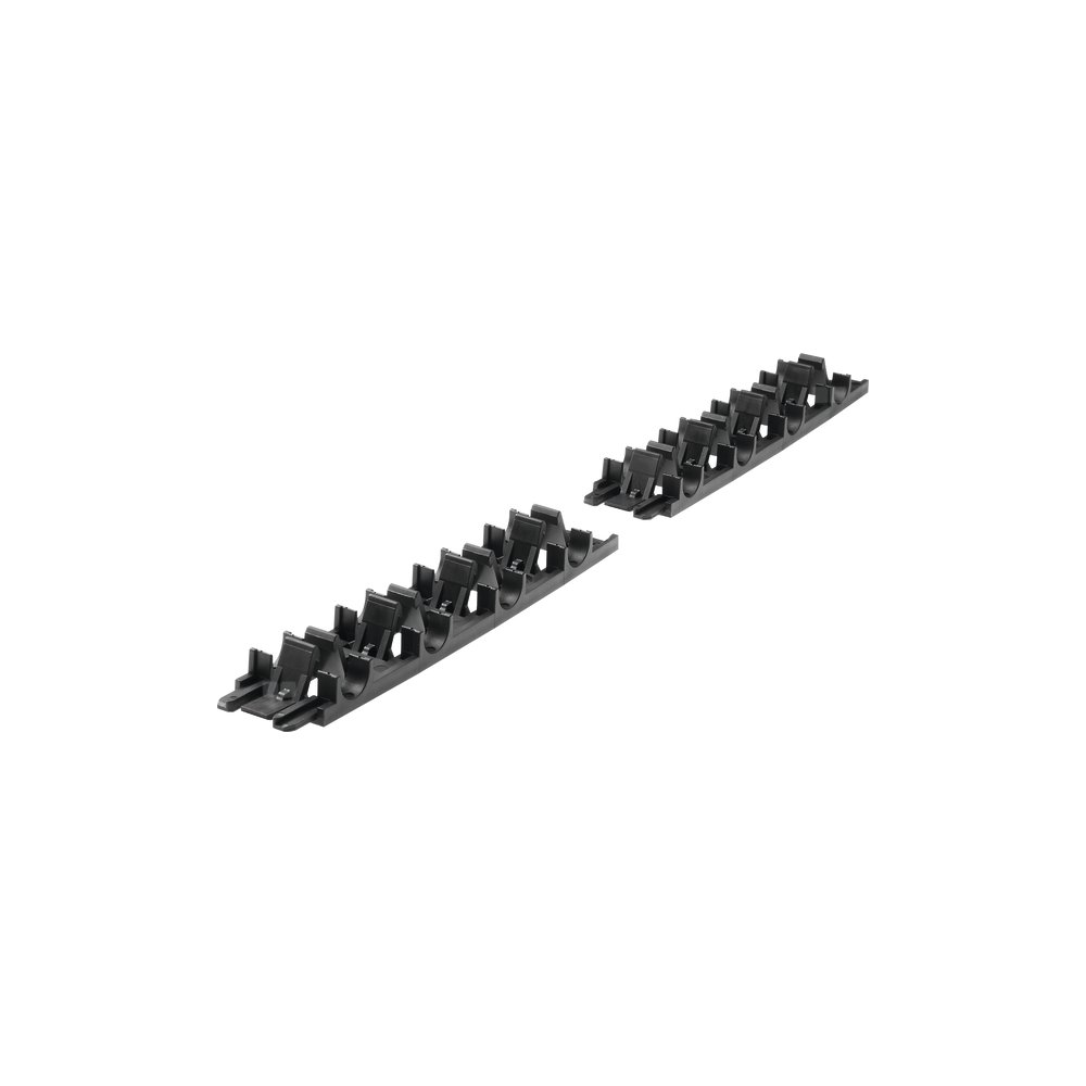Szyna montażowa składana z indywidualnych segmentów długości 100 cm w systemie push-fit. Tylna część szyny pokryty samoprzylepną taśmą dwustronną.