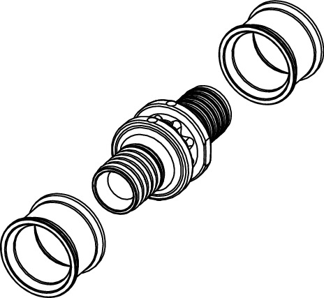 Zestaw składający się ze złączki prostej z PPSU i specjalnie dopasowanych tulei zaciskowych.