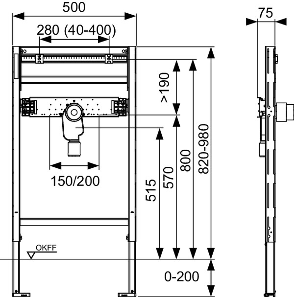 TECEprofil - stelaż montażowy pod umywalkę z syfonem podtynkowym, wysokość montażowa 820 - 980 mm