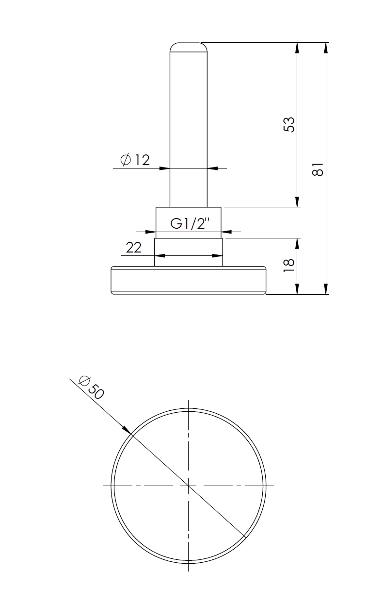Termometr bimetaliczny AFRISO BiTh fi 50 mm 0…60'C tuleja 63 mm połączenie ax