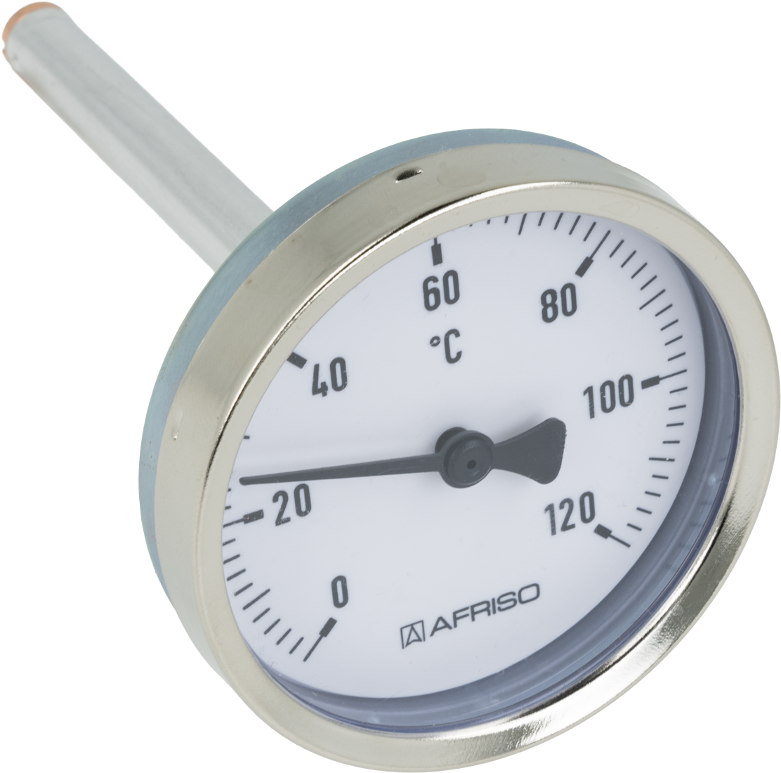 Termometr bimetaliczny AFRISO BiTh fi 63 mm 0…120'C tuleja 100 mm połączenie ax