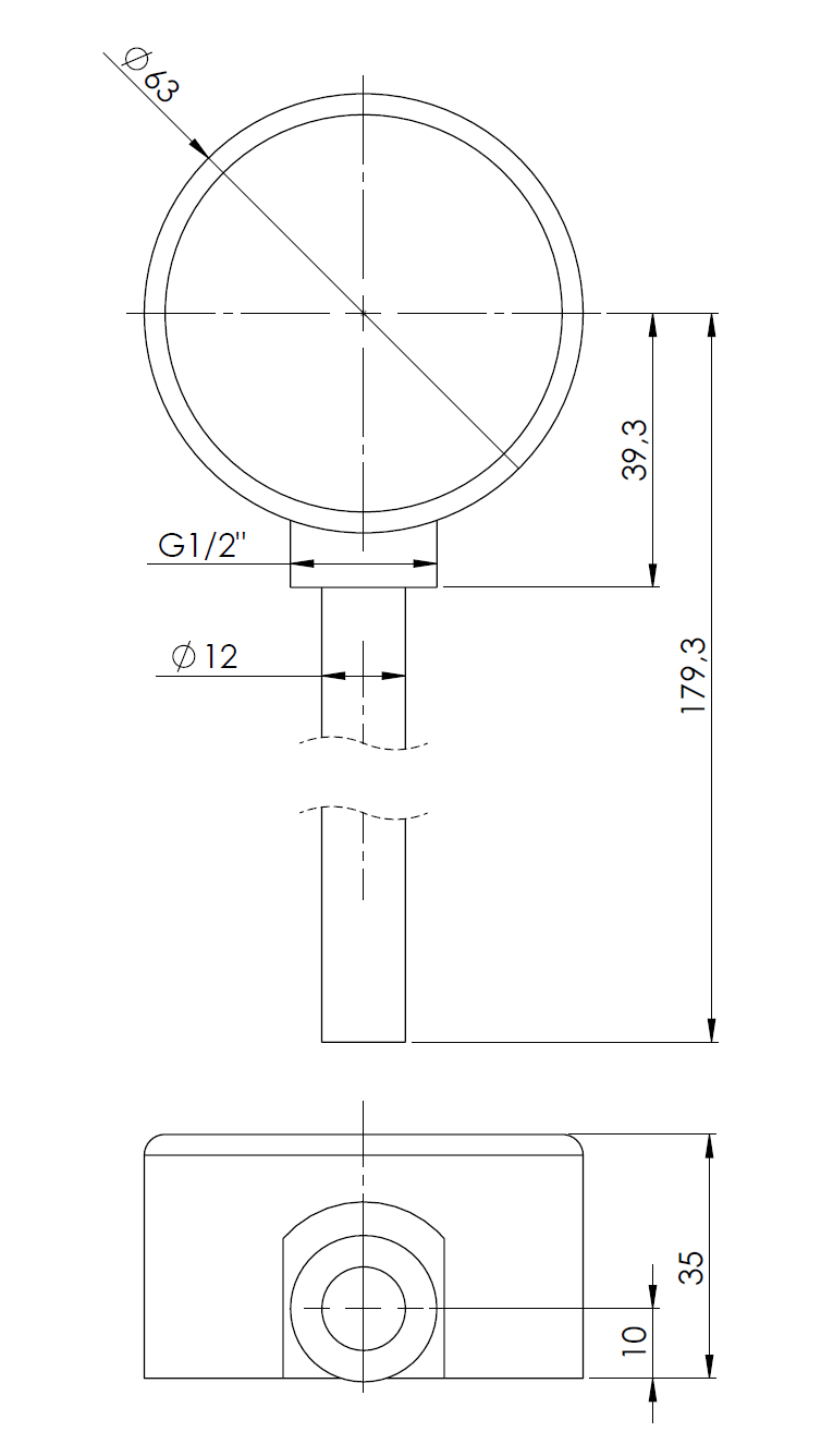 Termometr bimetaliczny AFRISO BiTh fi 63 mm 0…120'C tuleja 150 mm połączenie rad