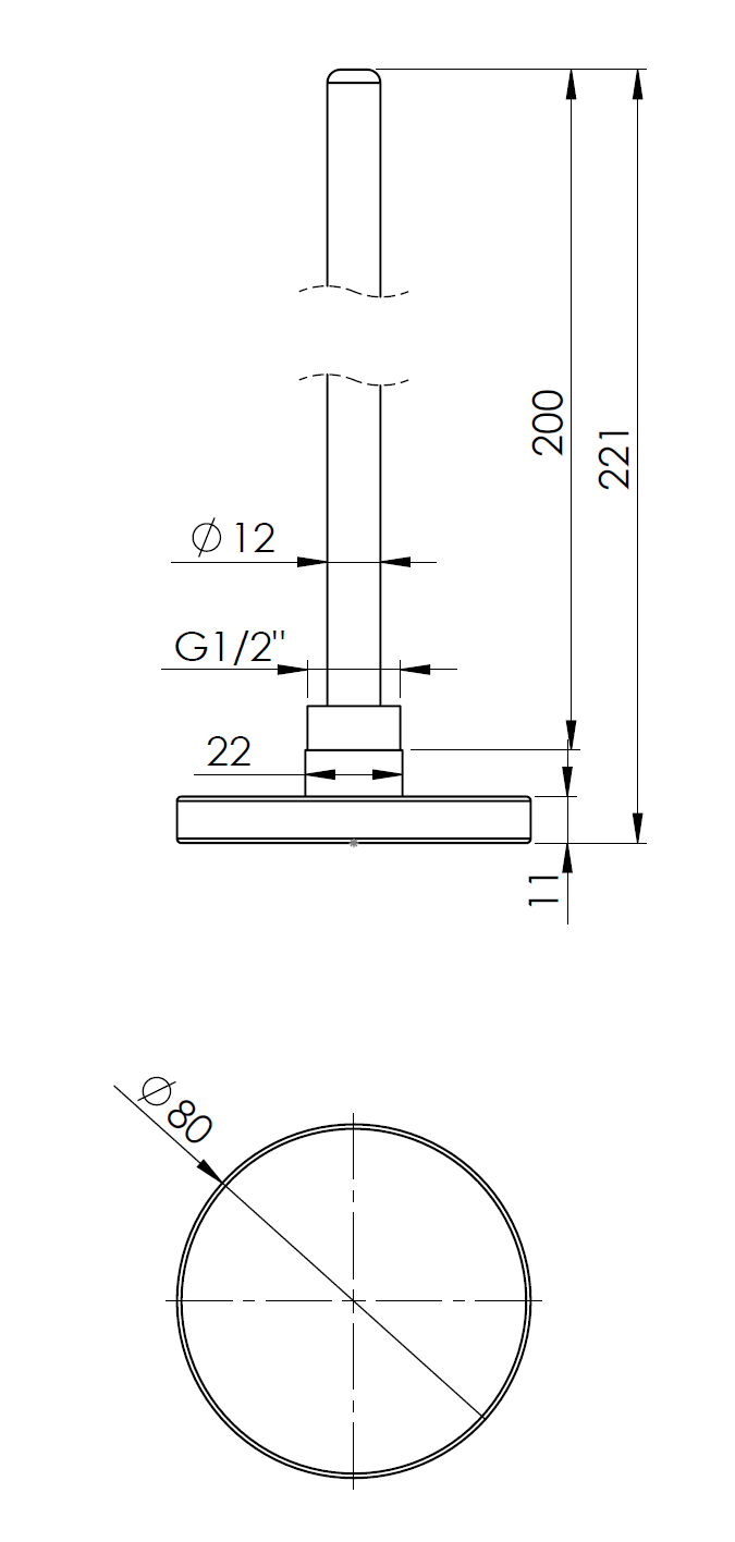 Termometr bimetaliczny AFRISO BiTh fi 80 mm 0…120'C tuleja 200 mm połączenie ax