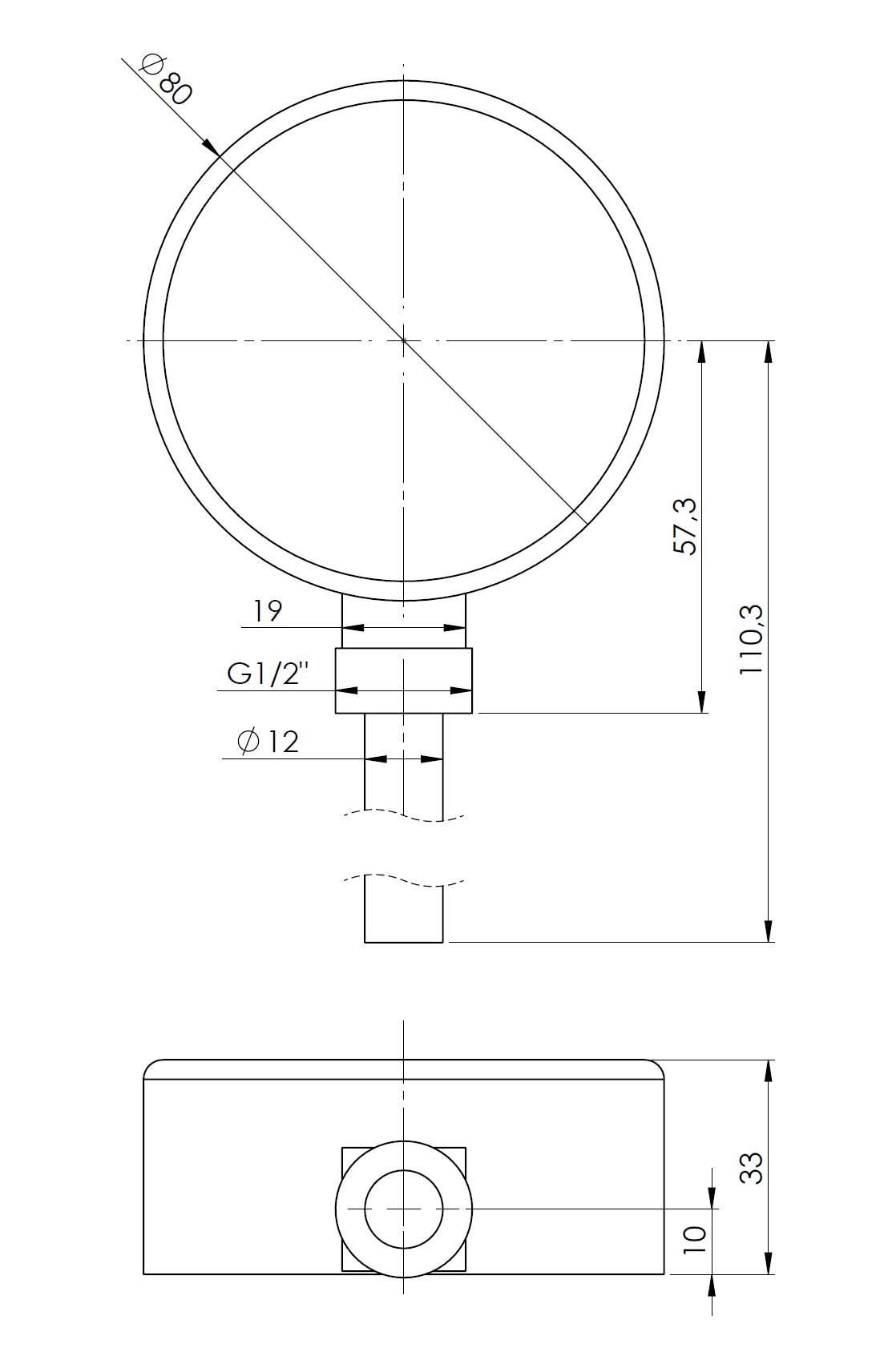 Termometr bimetaliczny AFRISO BiTh fi 80 mm 0…120'C tuleja 63 mm połączenie rad