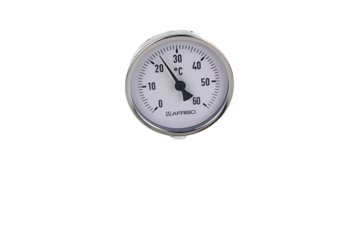 Termometr bimetaliczny AFRISO BiTh fi 80 mm 0…60'C tuleja 63 mm połączenie ax