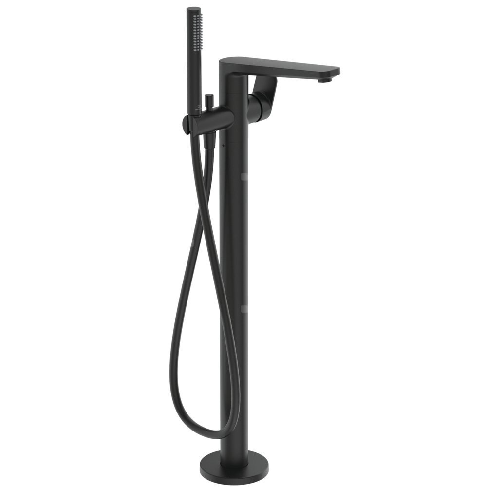 Bateria wannowo-natryskowa wolnostojąca Tonic II. Głowica Multiport 40 mm z ogranicznikiem temperatury. Mosiężny korpus wykonany z dwóch części z automatycznym przełącznikiem. Perlator typu Cascade z regulacją kierunku strumienia. Metalowy uchwyt z nadrukowanymi czerwonymi i niebieskimi oznaczeniami. Słuchawka natryskowa Stick, gładki wąż natryskowy IdealFlex 1250 mm. Zestaw montażowy z regulowaną głębokością montażu w posadzce w zakresie 80-160 mm. Rozeta podłogowa chromowana. Do skompletowania z elementem montażowym: A6133NU.