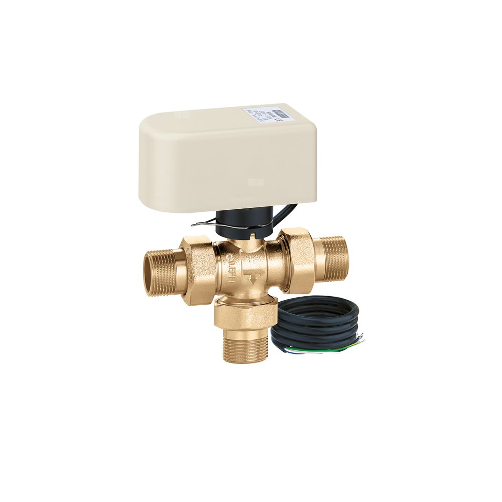 Trójdrożny zawór rozdzielający z napędem. Z siłownikiem ze sterowaniem 3-punktowym. Z mikroprzełącznikiem pomocniczym 40s 3/4"HP