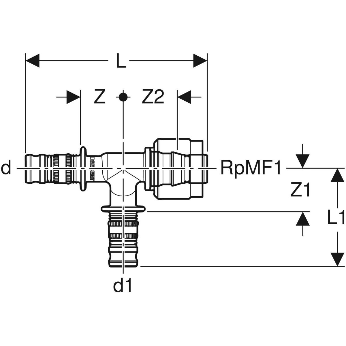 Trójnik GEBERIT Mepla PVDF 20 mm (końcówka wciskowa x końcówka wciskowa x masterfix)