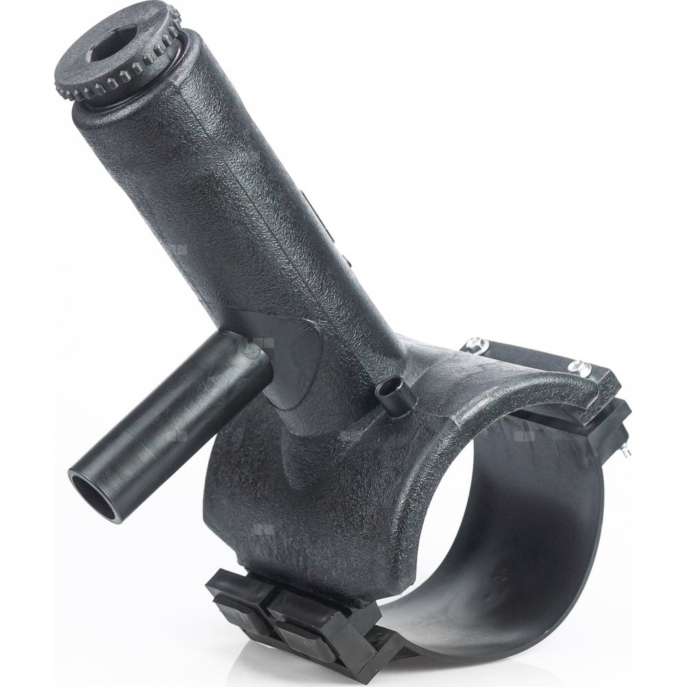 Trójnik siodłowy PE z nawiertką 63x 40 czarny z obejmą WEBA