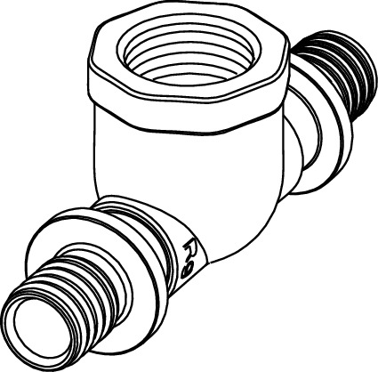 Trójnik z gwintem wewnętrznym z brązu do łączenia rur TECEflex ze złączkami gwintowanymi lub armaturą z gwintem zgodnie z normą EN 10226, za pomocą tulei zaciskowej, bez dodatkowych pierścieni uszczelniających typu O-ring. Złączka optymalizująca opór przepływu (wartość Zeta). Odpowiednie do każdej jakości wody pitnej. Bez tulei zaciskowych TECEflex.