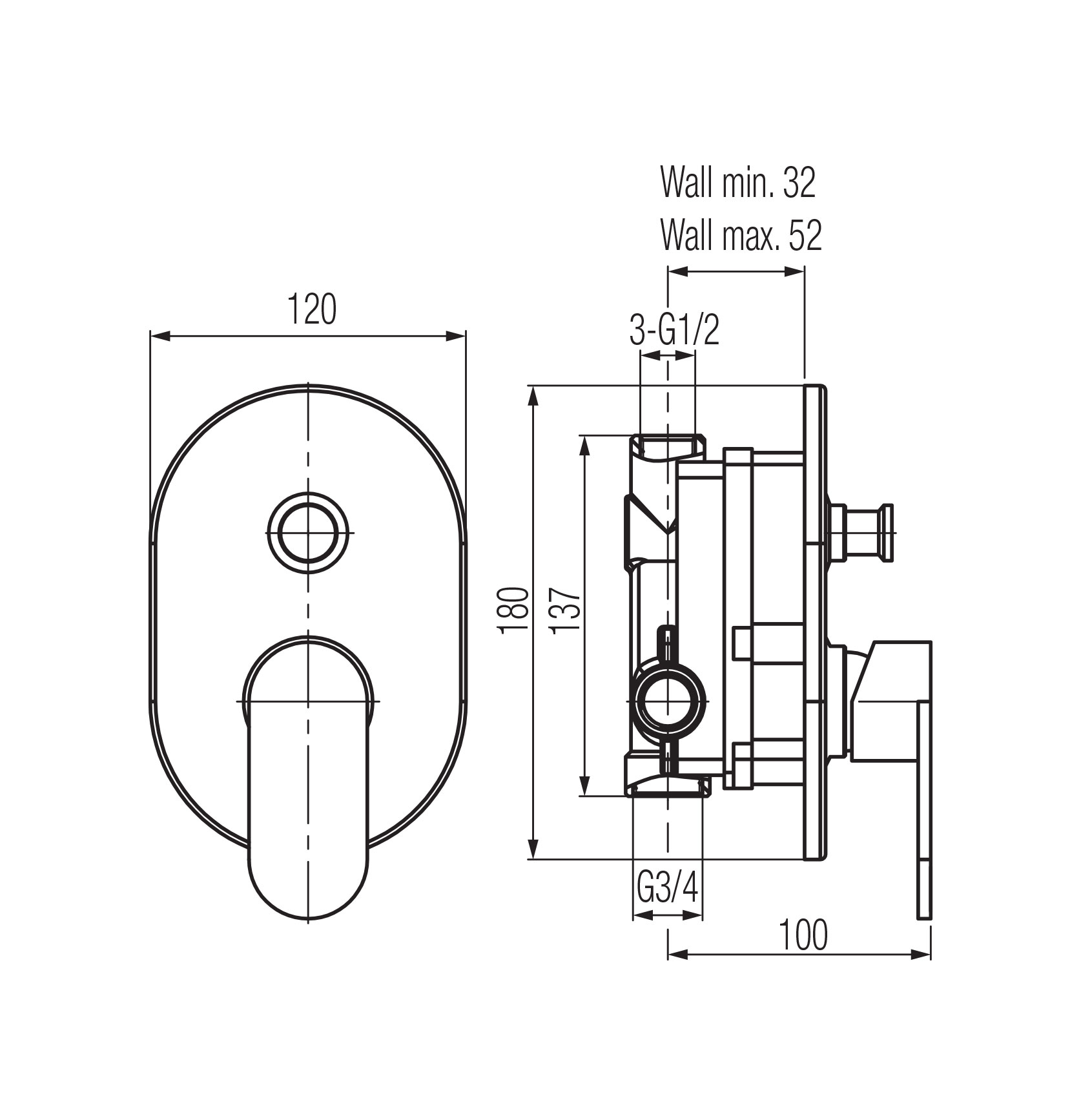 TUBE Bateria wannowo-natryskowa podtynkowa