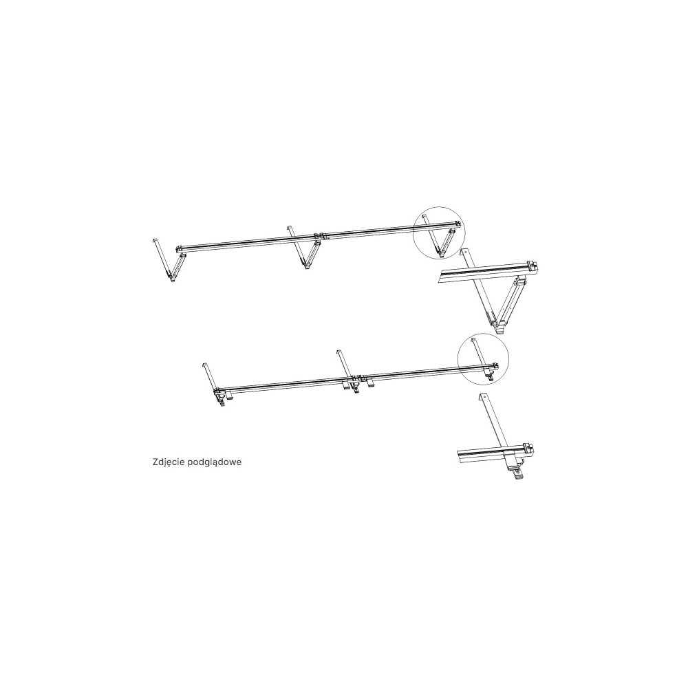 Mocowanie dla czterech kolektorów KS2600 TLP. Typ mocowania: Uchwyt korekcyjne na dach nachylony 15-30° – hak do dachówki H430.