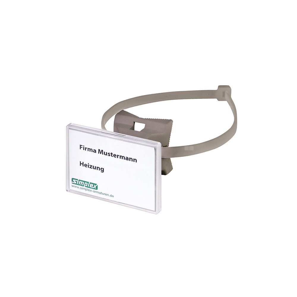 Uchwyt na znak wykonany z tworzywa sztucznego, z paskiem do szybkiego mocowania z poliamidu odpornego na ciepło, do średnicy zewnętrznej rury 200 mm, do samodzielnego zadruku etykiet 70 x 50,8 mm.